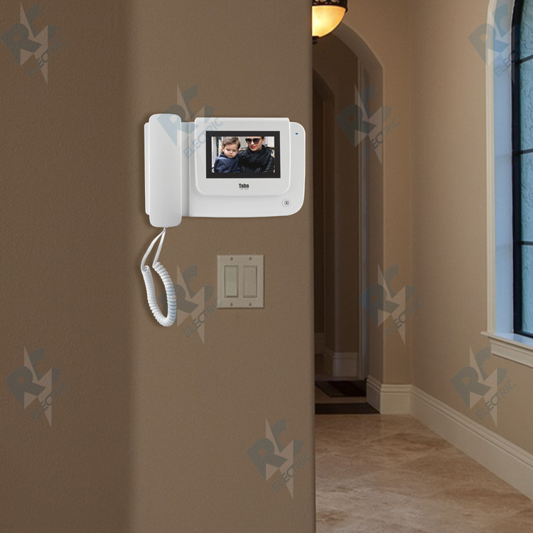 بخش بزرگی از بدنه آیفون تصویری تابا 1043در سمت راست، توسط صفحه نمایش 4/3 اینچی اشغال شده. در زیر این صفحه نمایش نام برند TABA به همراه مدل دستگاه نوشته شده است. در قسمت پایینی آن نیز تک دکمه ای وجود دارد که برای باز نمودن درب ورودی مورد استفاده قرار می گیرد. سمت راست کناره دستگاه شیاری برای ورودی حافظه میکرو SD به چشم می خورد و در کناره سمت چپ کلید خاموش و روشن نمودن آیفون تصویری قرار دارد. همچنین یک چراغ LED در بالا و در کناره سمت راست مانیتور تصویری تابا جهت وضعیت روشن و خاموش بودن دستگاه قرار گرفته است.