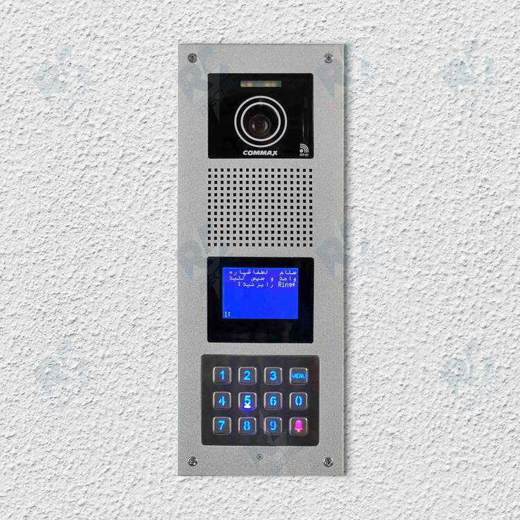 پس از آن بخش سیاه کارت خوان تعبیه شده است. از این بخش برای خواندن کارت و یا تگ RFID استفاده می شود. در بخش انتهایی پنل، صفحه کلیدی قرار گرفته است که از طریق آن شماره واحد مورد نظر درج و پس از تایید زنگ می خورد. این پنل کدینگ کارتی کوماکس در انواع شرایط آب و هوایی سرد و گرم مقاومت بالایی دارد.